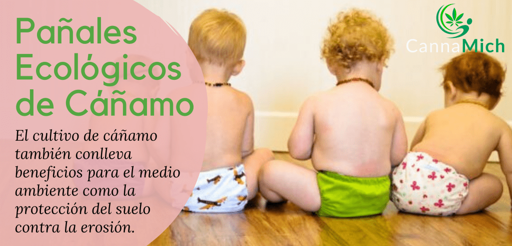 Los pañales de cáñamo pueden resultar una buena opción pues de él mismo se obtienen tres materias primas: semillas, fibra y pulpa. Las fibras son resistentes, suaves, aislantes y absorbentes, y se emplean en el sector textil para la confección, considerando la gran durabilidad que tiene el cáñamo tendrias que comprar como máximo 30 pañales que comprenden desde Rn (recién nacido) hasta los 3 años de edad, ahorrando 130 kilos de plástico (aproximadamente por año), 270 kilos de algodón, que con el cultivo de cáñamo se puede producir la misma cantidad de material en la mitad de superficie de la tierra, esto puede que no fuese una gran preocupación para los agricultores estadounidenses del siglo XVIII, pero en el mundo moderno, donde la tierra es escasa, los cultivos eficientes toman la delantera., sumandole a esto factores con el uso del agua, ya que el algodón necesita 9,7 litros de agua para cultivar 1 kg de fibra, mientras que el cáñamo sólo necesita 2,1 litros de agua. En algunas zonas del mundo se está produciendo una escasez de agua, o incluso una desertificación por el cultivo de algodón. Empezar a cultivar cáñamo para producción industrial podría ayudar a conservar los recursos de agua dulce de la tierra.